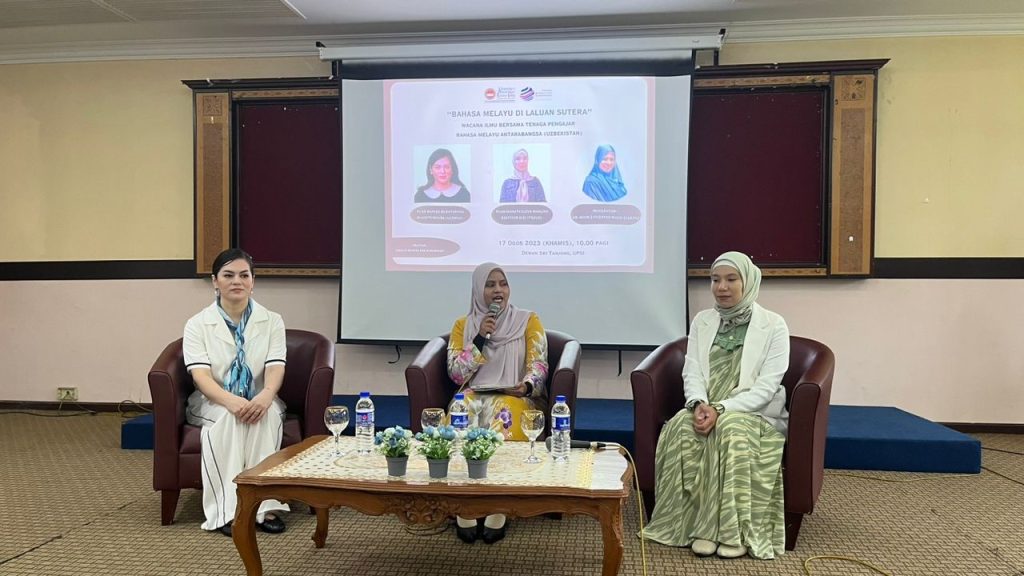 Puan Munisa Mukhtarova Mukhitdinovna dari Uzbekistan State World Languages University ( UzSWLU) dan Puan Mamatkulova Mahliyo Baxtiyor Qizi dari Tashkent State University of Oriental Studies (TSOUS) berkesempatan berkongsi pengalaman sempena Wacana Ilmu “Bahasa Melayu di Laluan Sutera”.
