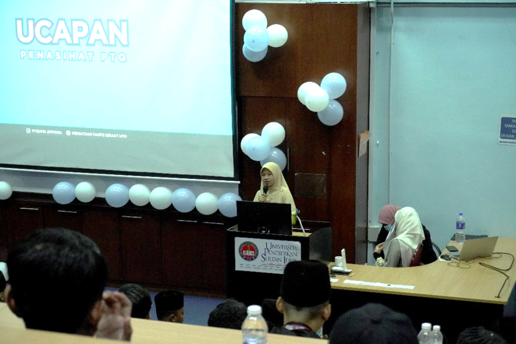 Tanjong Malim, 09 November 2024- Barisan kepimpinan Persatuan Tahfiz Qiraat UPSI dengan jayanya telah mengadakan Town Hall PTQ bertempat di E-learning 5, KSAJS. Program ini telah dirasmikan oleh Ummikalsum Mat Lazim selaku Penasihat Persatuan Tahfiz Qiraat. Program ini telah dihadiri oleh 100 orang ahli Persatuan Tahfiz Qiraat yang terdiri daripada semester 1 hingga 7. Tujuan utama program ini diadakan adalah bagi mengetahui perancangan penuh program PTQ di samping memberi dan membuka peluang kepada ahli PTQ untuk mengemukakan cadangan dan penambahbaikan program-program yang bakal dijalankan oleh Persatuan Tahfiz Qiraat sepanjang sidang 2024/2025.