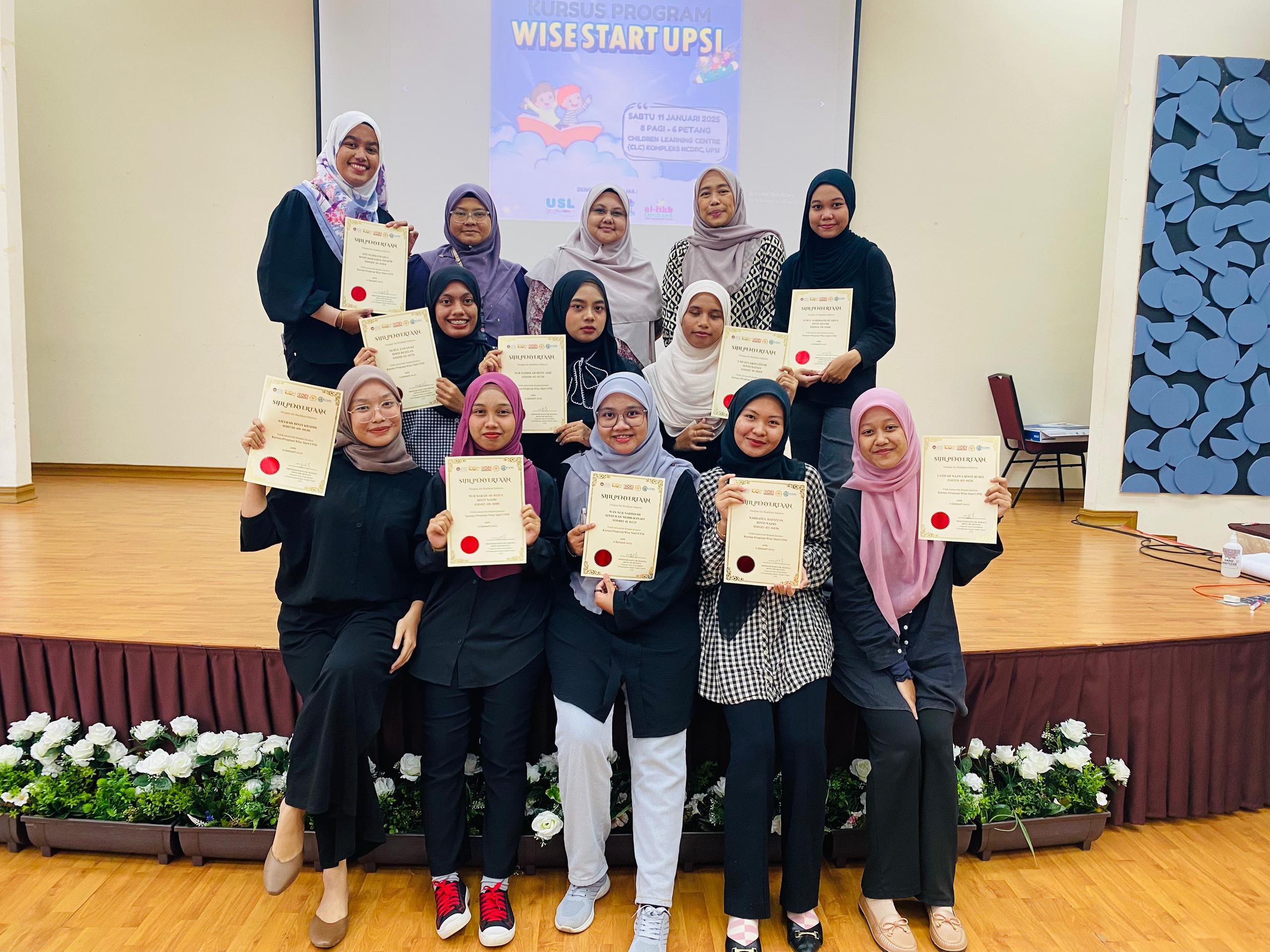 Pusat Penyelidikan Perkembangan Kanak-Kanak Negara (NCDRC), Universiti Pendidikan Sultan Idris (UPSI) menganjurkan kursus istimewa Wise Start@UPSI, sebuah inisiatif inovatif yang dirangka untuk 14 orang pelajar Semester 5 dan 7 dari Program Ijazah Sarjana Muda Pendidikan Awal Kanak-kanak. Kursus ini bertujuan melahirkan bakal usahawan taska dan tadika yang kompeten, berwawasan, dan mampu menyediakan perkhidmatan pendidikan awal kanak-kanak berkualiti tinggi.