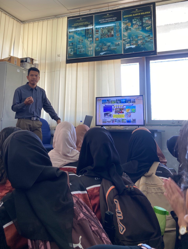 Aktiviti dimulakan di Stesen Meteorologi Ipoh. Pelajar Kursus Kajian Iklim (HGF3073) turut berpeluang menghadiri sesi taklimat khas mengenai sistem amaran awal bencana di Malaysia yang disampaikan oleh salah seorang pegawai meteorologi berpengalaman. Sesi ini memberi fokus kepada peranan Jabatan Meteorologi Malaysia dalam menyediakan sistem amaran awal yang penting untuk mengurangkan risiko bencana seperti ribut petir, banjir, dan gempa bumi. Pelajar juga diberikan penerangan mendalam tentang proses pemantauan cuaca, teknologi yang digunakan dan cabaran yang dihadapi dalam menghasilkan ramalan yang tepat.