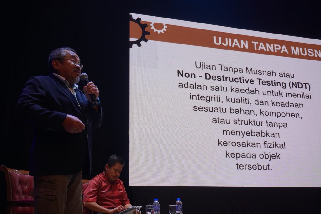 Ceramah telah disampaikan oleh Tuan Saharudin Kambari, Profesor Adjung Jabatan Fizik dan Pengerusi Eksekutif NDE Consultancy Services Sdn. Bhd. Beliau memiliki kepakaran luas dalam bidang Pengujian Tanpa Musnah, khususnya dalam teknik-teknik pengujian, latihan kompetensi dan persijilan, serta penglibatan aktif dalam industri ini di Malaysia. Ceramah ini bertujuan memberikan pendedahan kepada pelajar serta hadirin mengenai bidang Pengujian Tanpa Musnah dan prospek kerjaya dalam industri tersebut. Pameran berkaitan teknologi dan latihan turut diadakan.