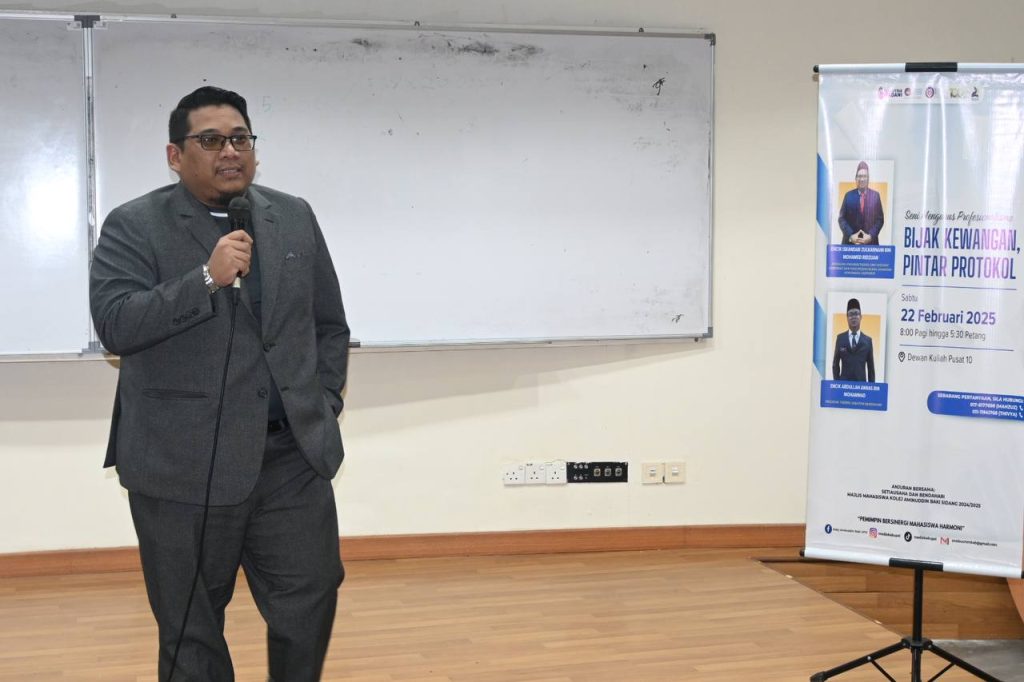 Tanjung Malim, 22 Februari 2025– Majlis Mahasiswa Kolej Aminuddin Baki (KAB), Universiti Pendidikan Sultan Idris (UPSI) sidang 2024/2025 telah mengadakan satu bengkel atau dikenali sebagai Bijak Kewangan, Pintar Protokol : Seni Mengurus Profesionalisme.