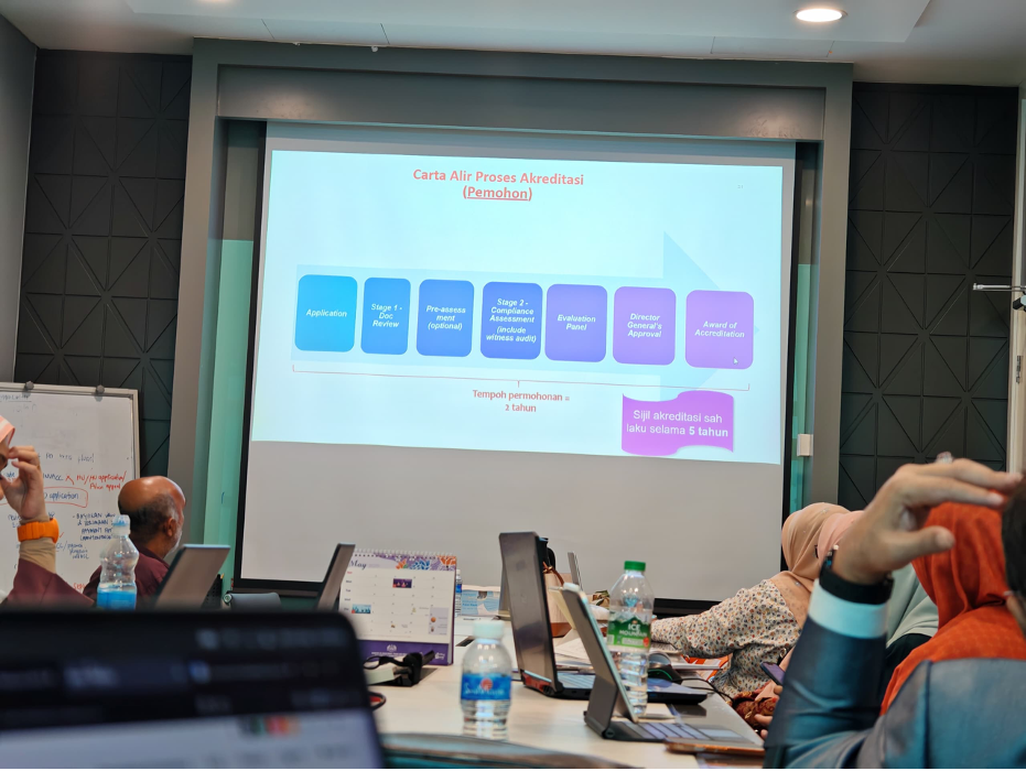 Kunjungan hormat ini bertujuan mendapatkan panduan serta penerangan terperinci berkenaan prosedur dan garis panduan yang perlu dipatuhi dalam proses pensijilan standard dan akreditasi.