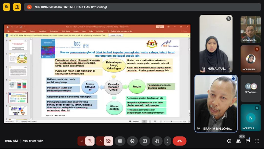 Webinar ini dikendalikan dengan jayanya oleh pelajar dari Kursus Kaji Iklim (HGF 3073) dengan bimbangan Profesor Madya Dr. Mohd Hairy Ibrahim yang juga merupakan pensyarah di Jabatan Geografi dan Alam Sekitar.