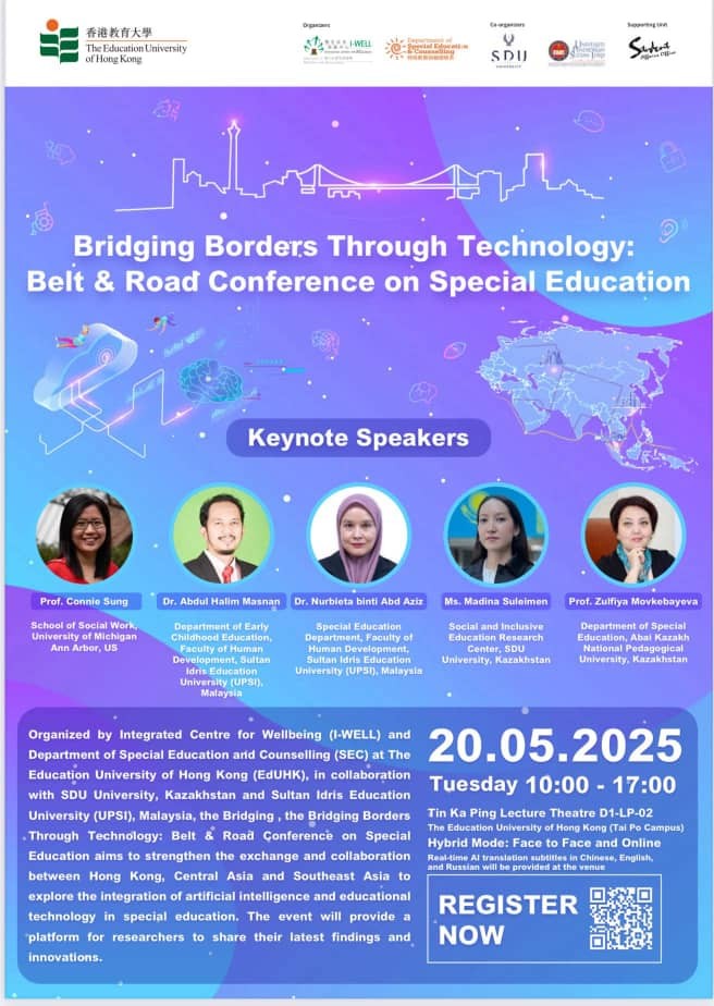 Tanjong Malim, 21 Mei 2025- The Education University of Hong Kong telah mengambil pendekatan global dengan menjemput pakar daripada pelbagai negara bagi membincangkan di dalam seminar “Bridging Borders Through Technology: Belt & Road Conference on Special Education” Seminar itu melibatkan peserta dari kalangan pengurus, pelaksana di Kementerian Pendidikan dan pendidik dan pensyarah yang melibatkan beberapa negara seperti Universiti SDU (Kazakhstan), Universiti of Michigan (USA), St. Petersburg Polytechnic University (Rusia), Uni Brunei Darussalam dan negara-negara lain.