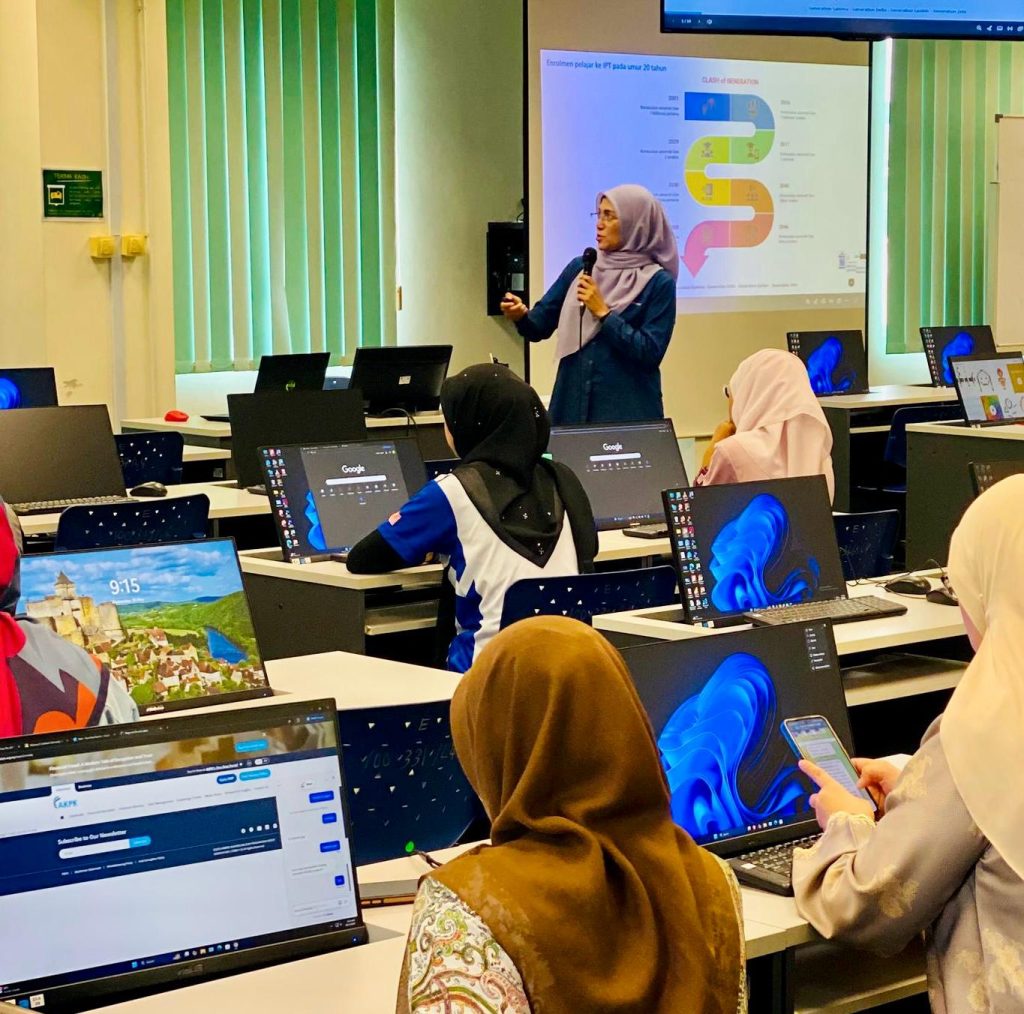 Sesi bengkel telah dikendalikan oleh dua fasilitator utama, Profesor Madya Dr Shakinaz Desa dari Fakulti Sains dan Matematik (FSM) dan Dr Mohd Fadhil Harfiez dari Fakulti Komputeran dan META Teknologi (FKMT), dengan sokongan teknikal daripada warga PTM. Mereka membimbing peserta dalam menguasai kemahiran penulisan prompt AI yang efektif, seiring dengan perkembangan teknologi kecerdasan buatan (AI) dalam pendidikan.