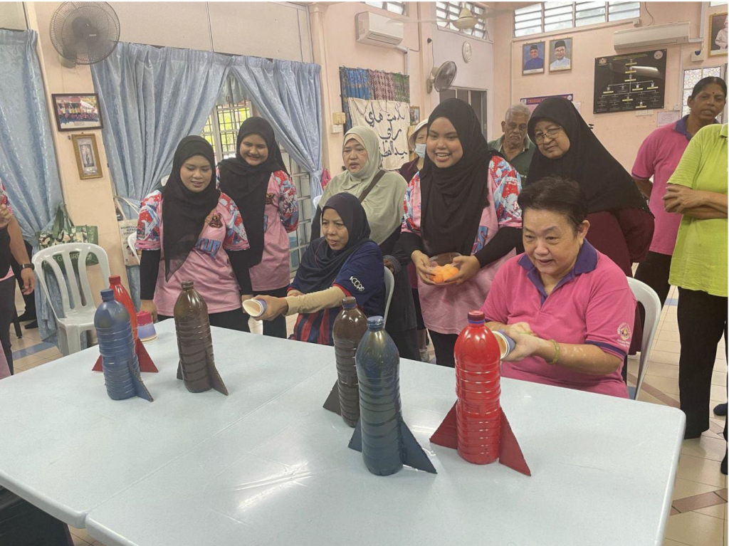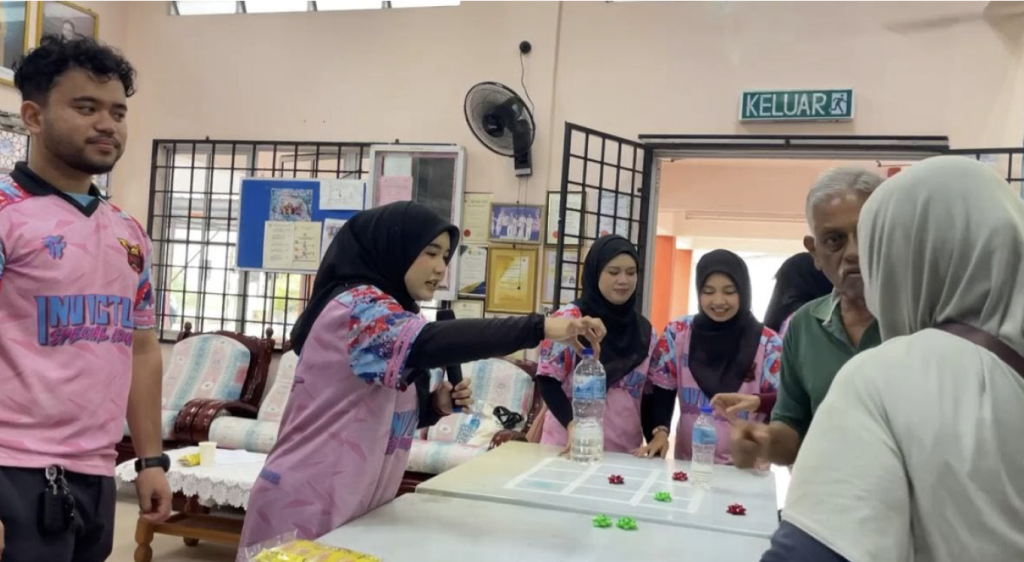 Tanjong Malim – 14 Mei 2025, Program Santun Masyarakat bertemakan “Lantera Harapan Bersama Pusat Aktiviti Warga Emas (PAWE)” yang telah dilaksanakan di Pusat Aktiviti Warga Emas (PAWE) yang bertempat di Kampung Ketoyong telah mencerminkan usaha mahasiswa UPSI dalam menyantuni komuniti, khususnya golongan warga emas. Program yang telah dijalankan ini telah memfokuskan kepada beberapa elemen, antaranya adalah kesihatan, interaksi sosial dan kreativiti melalui pelbagai aktiviti santai dan bermakna yang telah dirancang serta dilaksanakan sendiri oleh mahasiswa. Antara aktiviti yang dijalankan adalah senamrobik, bottle knockdown, bottle flip tic tac toe, Misi tepat lubang, sambunglah sayang, Hello, what’s the colour? dan guess the action word. Aktiviti-aktiviti ini bukan sahaja menyeronokkan, bahkan berjaya merangsang kecerdasan emosi, fizikal dan mental warga emas di PAWE. Ia lebih daripada sekadar hiburan, program ini telah menjadi platform pembelajaran luar bilik darjah yang lebih signifikan buat para mahasiswa. Mereka bukan sahaja dapat mengaplikasikan nilai empati, toleransi dan komunikasi dalam suasana sebenar masyarakat, malah turut menyemai semangat kesukarelawanan dan hormat-menghormati antara generasi. Interaksi yang berlaku sepanjang program ini telah memperkukuh hubungan sosial dua hala yang sarat dengan nilai kemanusiaan dan kasih sayang.