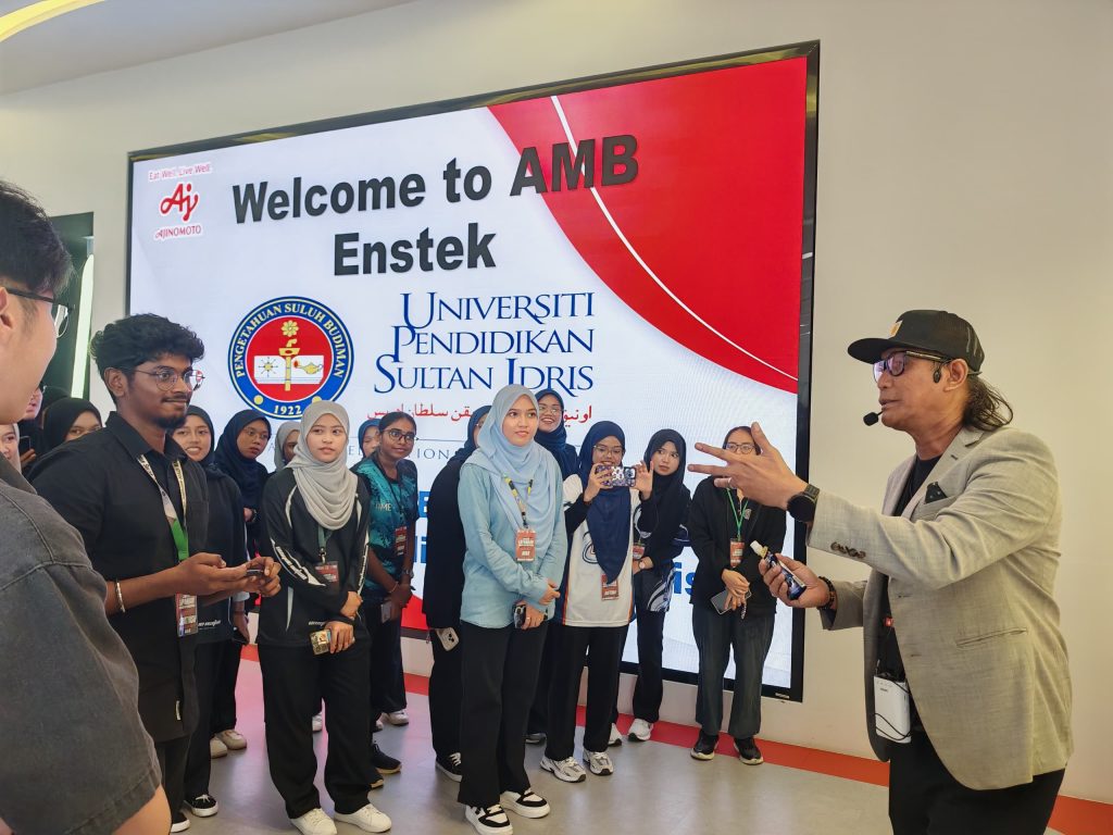 Sesi lawatan turut disambut oleh wakil dari Kilang Ajinomoto, En. Norazmi Mohamad, selaku Pegawai Jabatan Komunikasi Korporat dan Perniagaan Ajinomoto (Malaysia) Berhad, yang memberikan penerangan terperinci mengenai operasi syarikat, strategi komunikasi korporat, serta komitmen Ajinomoto dalam memperkukuh imej jenama di peringkat nasional dan global.