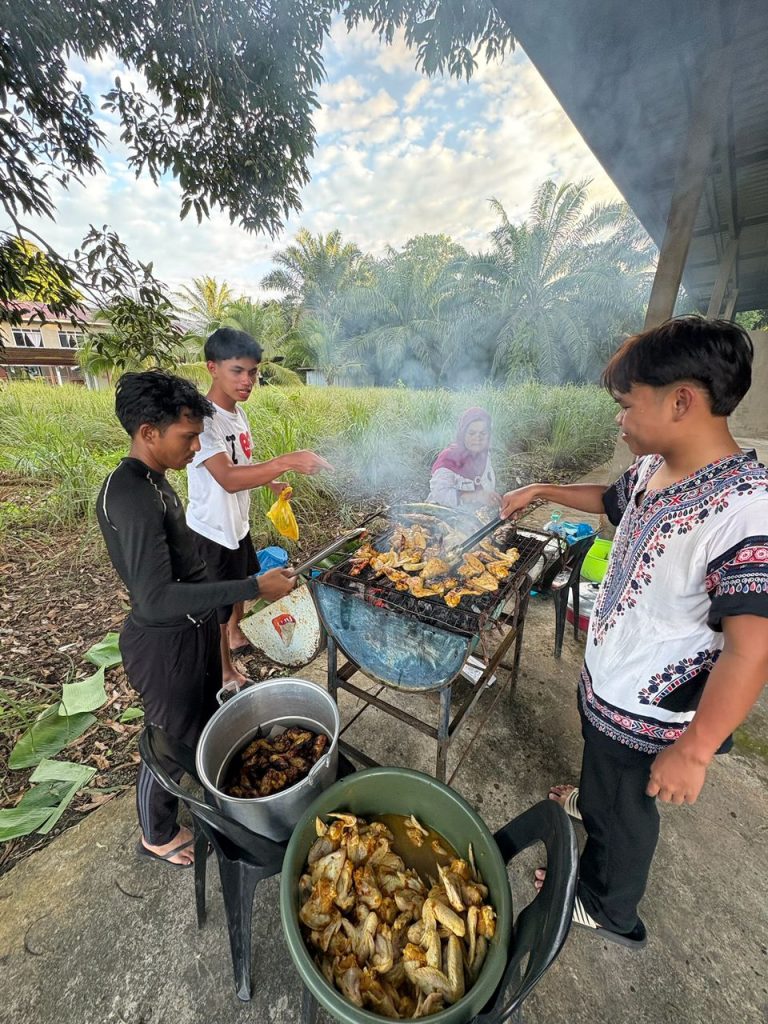 Suasana penuh kemesraan terjalin apabila para sukarelawan berganding bahu menyediakan juadah makan malam sambil berinteraksi dan berkongsi cerita bersama penduduk kampung.