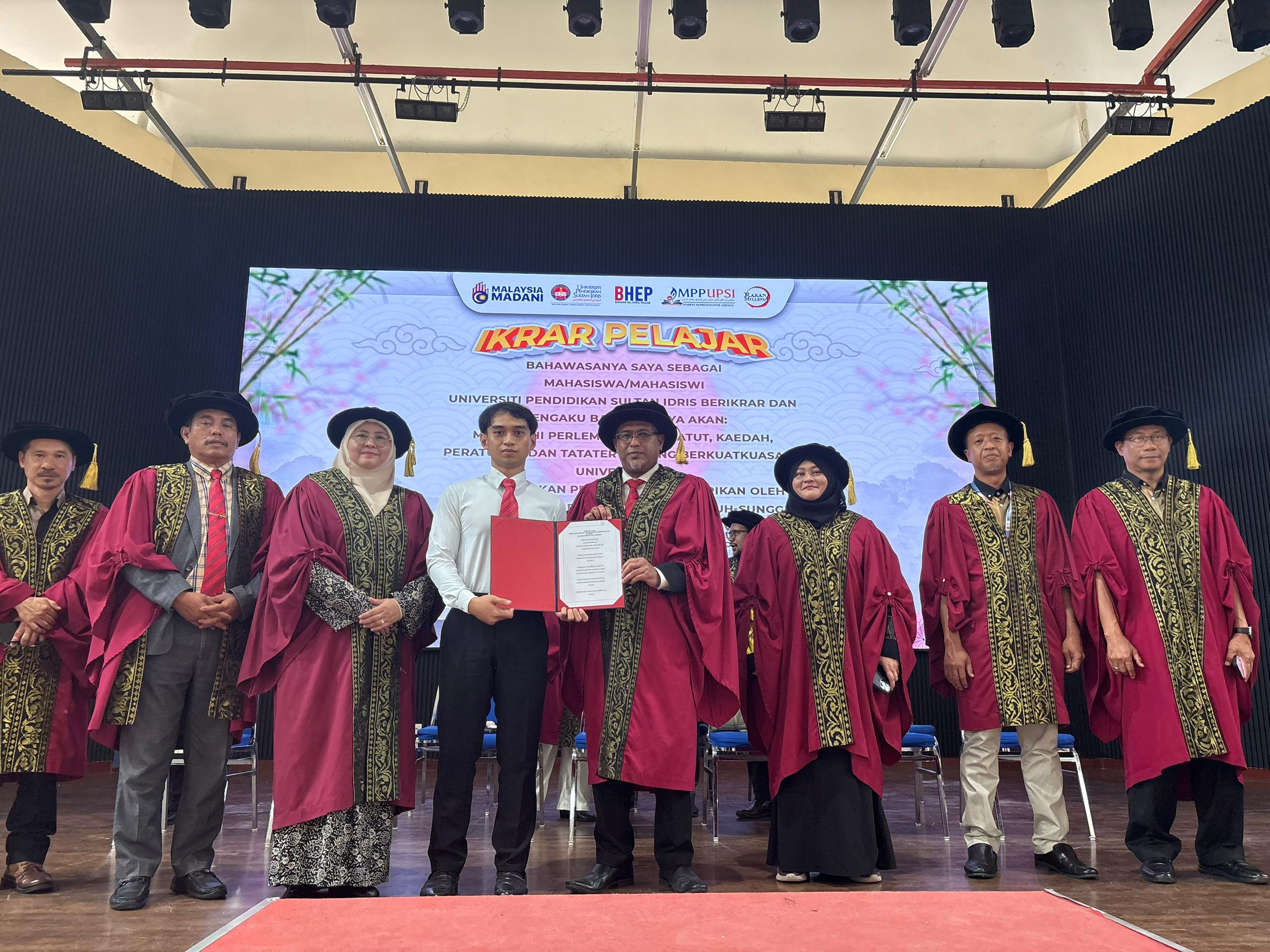 “Ikrar yang dilafazkan hari ini menjadi titik mula perjalanan akademik anda. Jadikan setiap langkah di UPSI sebagai medan untuk membina sahsiah, kepimpinan dan jiwa pendidik yang unggul,” ujar beliau.