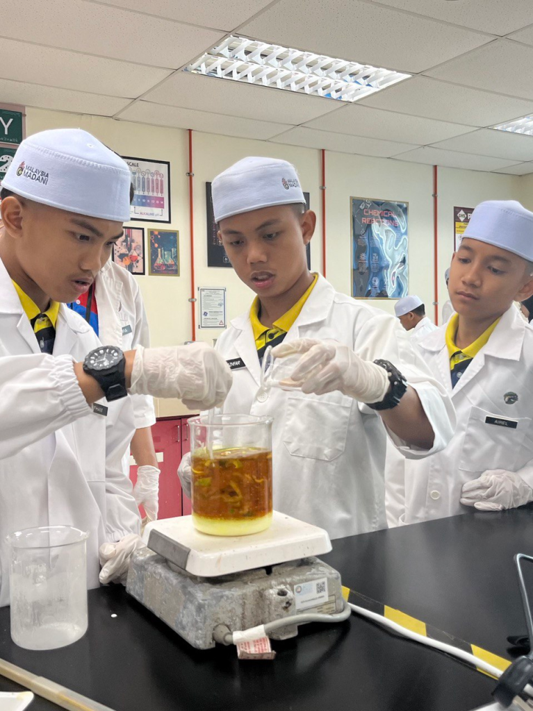 A total of 36 pupils and 2 teachers from Ma’ahad At-Taufiqiah Al-Diniah, Behrang Stesen participated in the programme as the targeted community. The theme for this year’s programme is ‘Kitchen Alchemist: Waste into Wonders’, aimed at nurturing students’ interest in STEM while promoting sustainable practices through hands-on science activities. This initiative supports SDG 2: Zero Hunger and SDG 12: Responsible Consumption and Production by focusing on wisely managing food consumption and reducing waste by turning it into something useful. Apart from that, this initiative also equipped students with essential digital skills to help them create and share educational content ethically on social media.
