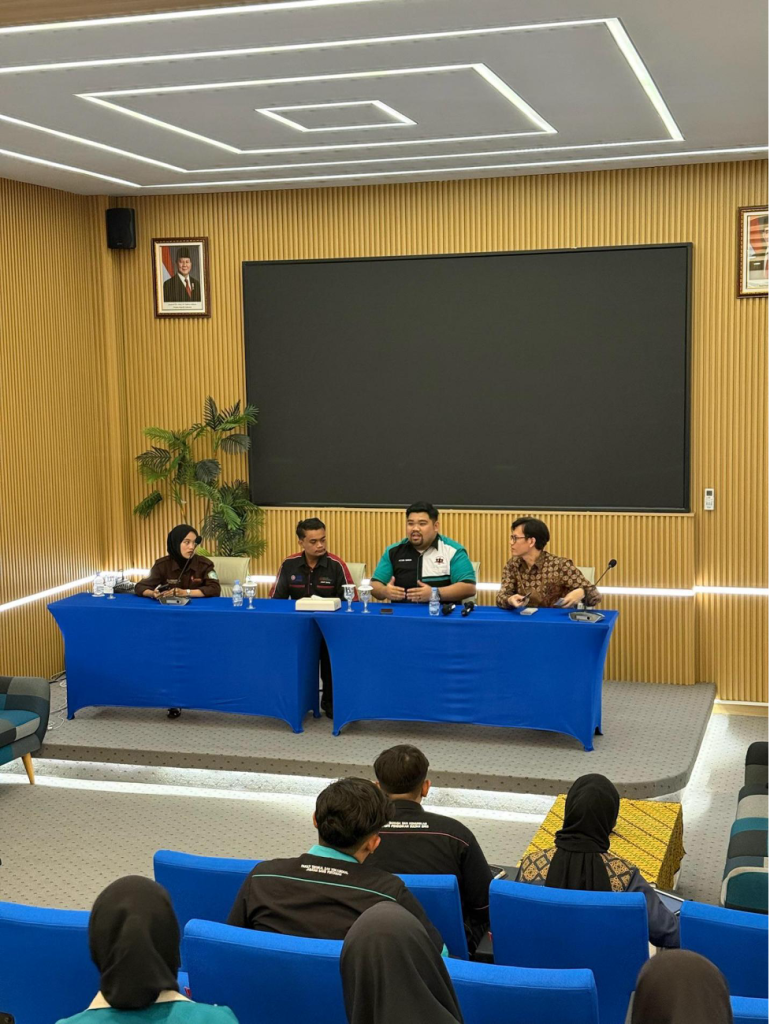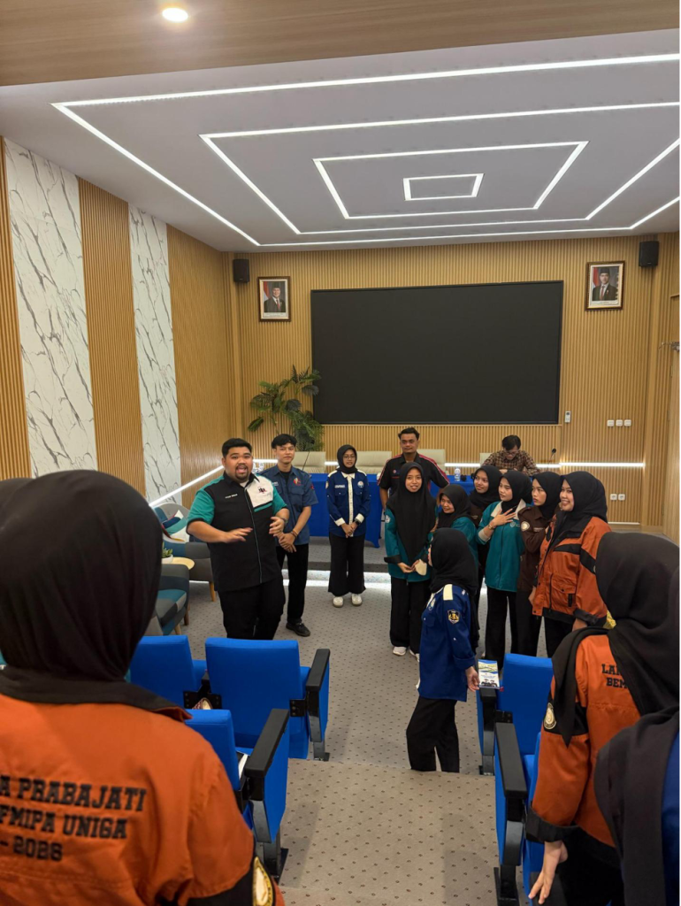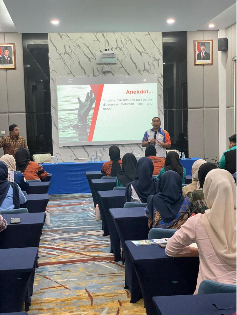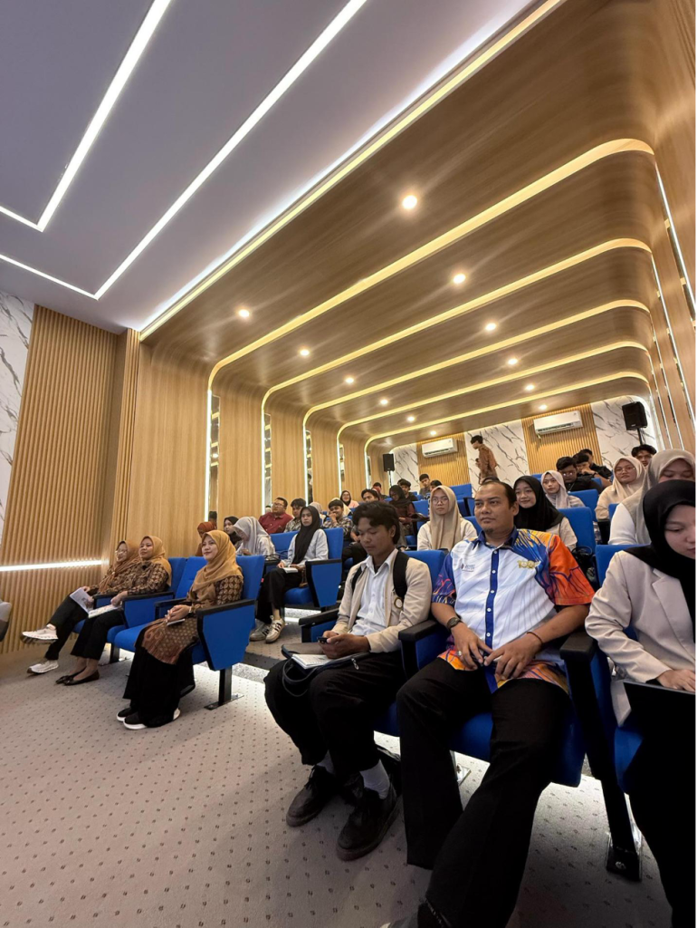 Pada masa yang sama, satu lagi slot ilmiah turut berlangsung di bilik kuliah bersebelahan yang menampilkan Dr. Entsar Nuari, M.Si. dari Fakulti Matematik dan Sains Alam (FMIPA), UNIGA dengan fokus kepada pengurusan bekalan farmasi semasa bencana.