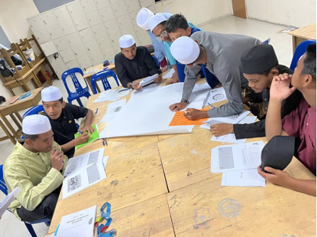 Pelajar membina skrip drama dengan bantuan fasilitator sebagai pemantau. Fasilitator juga menerapkan pembinaan ayat bahasa Arab yang mudah dan ringkas sebagai pengukuhan asas dalam pembinaan ayat bahasa Arab.