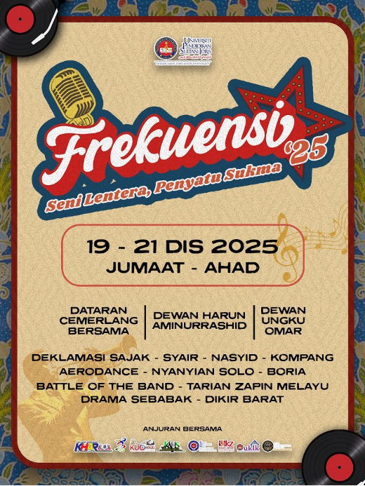 TANJONG MALIM, 21 Disember 2025 – Kumpulan nasyid BiTaRa sekali lagi menerima pengiktirafan apabila dijemput terlibat secara rasmi dalam Festival Kesenian dan Kebudayaan Kolej-Kolej Kediaman UPSI 2025 (FREKUENSI 25’), melibatkan dua peranan penting sepanjang penganjuran festival tersebut.