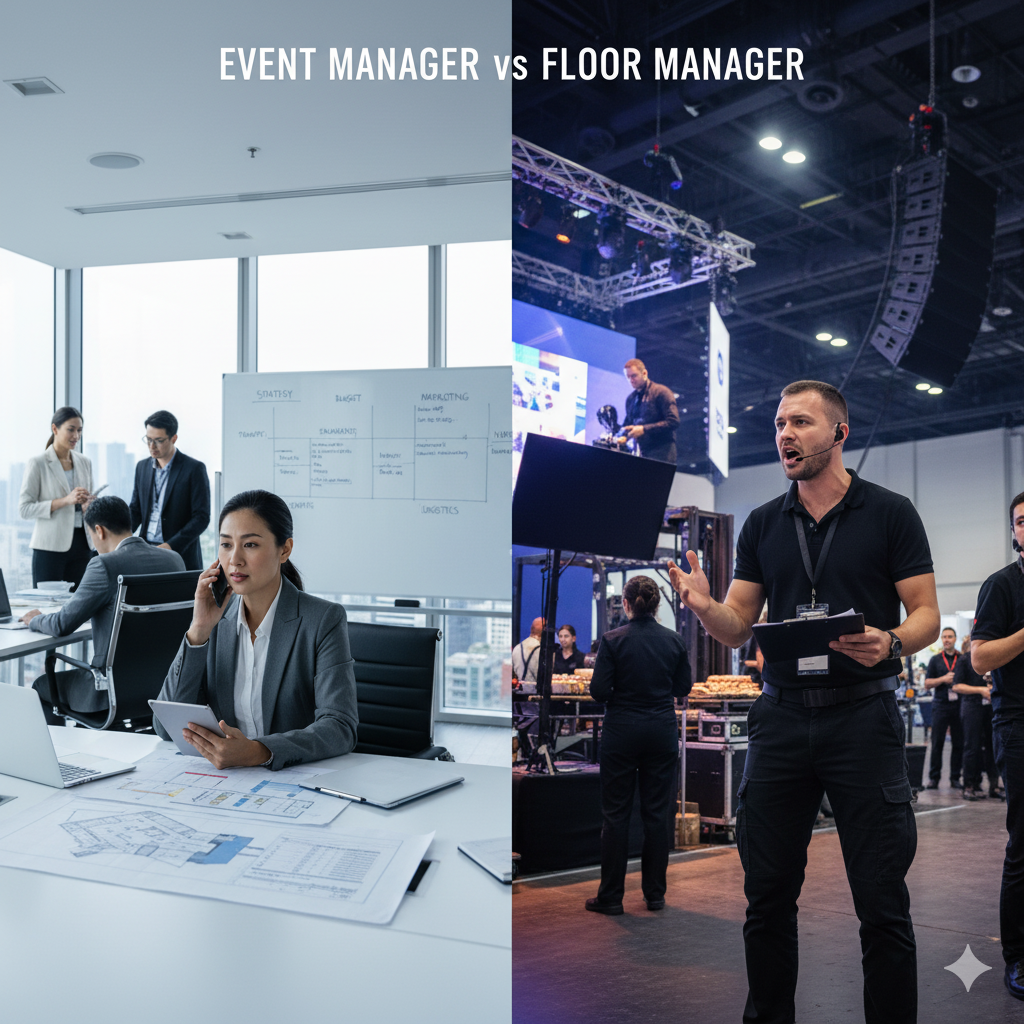 Dua jawatan yang sering kali menimbulkan kekeliruan namun memikul beban tugas yang sangat berbeza ialah Pengurus Acara (Event Manager) dan Pengurus Lantai (Floor Manager). Walaupun kedua-duanya bermatlamat untuk menjayakan majlis, skop kerja mereka dipisahkan oleh dimensi perancangan strategik dan pelaksanaan operasi di lapangan.