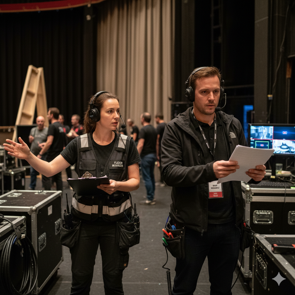 Secara tuntasnya, kejayaan sesebuah acara bergantung kepada persefahaman antara dua jawatan ini. Walaupun dipisahkan oleh sempadan pentas, Stage Manager dan Floor Manager adalah dua tiang utama yang memastikan visi kreatif pengarah dapat dilaksanakan dengan sempurna.