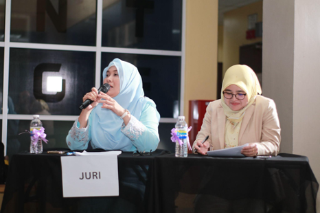 Prof. Madya Dr. Rasinah sedang memberikan komen terhadap rekaan oleh para peserta