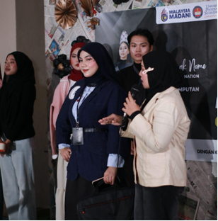 Penerangan oleh peserta tentang rekaan yang diperagakan.