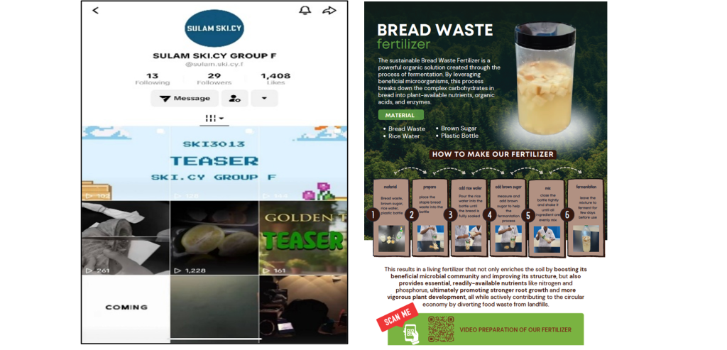 The second phase centred on outreach efforts conducted for three weeks. Students shared the fertilizer-making techniques with the community, guiding them through each step and highlighting the importance of waste reduction. In addition, the informational videos and infographics were disseminated through the TikTok platform to reach a wider audience, leveraging social media as an effective tool for community education and environmental advocacy.