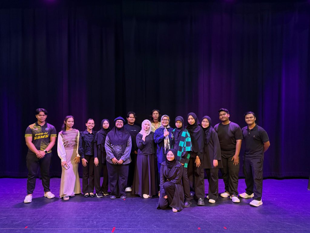 Tanjong Malim, December 27th 2025 – The students of CPL2031 Theater and Drama successfully delivered a theater performance titled ‘Diantara Kau, Aku dan Waktu,’ featuring Adib Azryll as Adam, Sharifah Nadiah as Hasmah, Sylvia Anak Johnstin as Luna, as well as many other cast members and ensembles who gave their all to complete their show on the grand stage of Tinta Pesona, Faculty of Music and Performing Arts. CPL2031 Theater and Drama is one of the many subjects offered by the UPSI Co-Curricular Centre as a requirement to meet the necessary number of credit hours per semester.