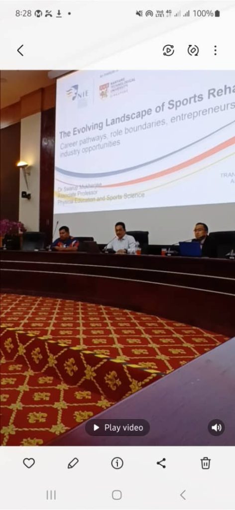 Prof. Madya Dr. Swarup Mukherjee, Profesor Adjung FSSK dari Jabatan PESS, Nanyang Technological University (NTU), Singapura – yang hadir dalam lawatan akademiknya dari 13 hingga 17 April 2026 — menyampaikan tajuk “Evolving Landscape of Sport Rehabilitation Therapist”.