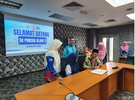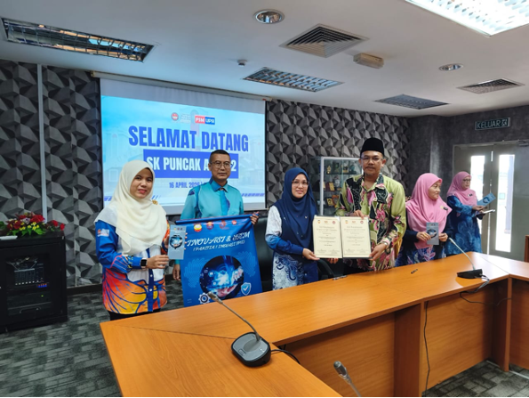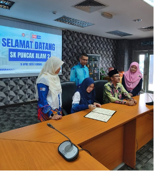 Program diteruskan dengan sesi menandatangani sijil kolaborasi antara SK Puncak Alam 2 dan Fakulti Sains Matematik, UPSI sebagai tanda jalinan kerjasama strategik antara kedua-dua pihak. Sesi bergambar turut diadakan bagi merakamkan momen kolaborasi ini.