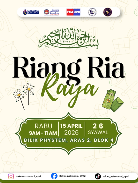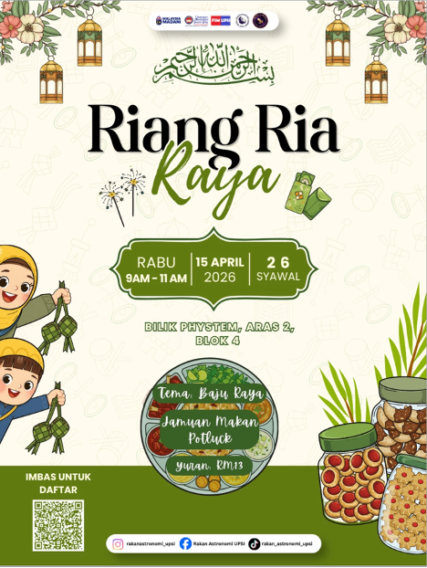 Tanjong Malim, 15 April 2026 – Kelab RASTRO Sidang 2025/2026 Universiti Pendidikan Sultan Idris telah berjaya menganjurkan Jamuan Raya Kelab RASTRO yang berlangsung di Makmal STEM, Blok 4, Fakulti Sains dan Matematik (FSM), UPSI.